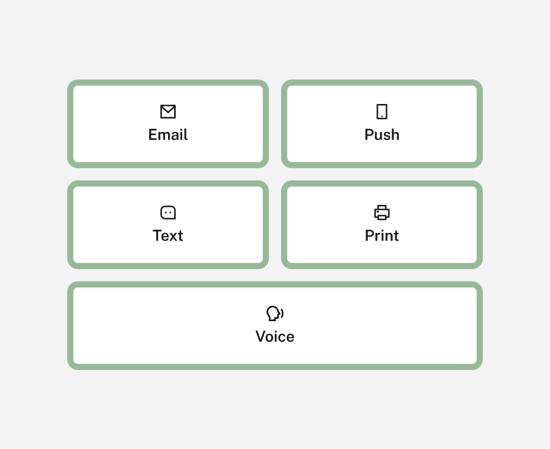 More delivery options for better reach. Send messages via email, text, voice, and push notifications.